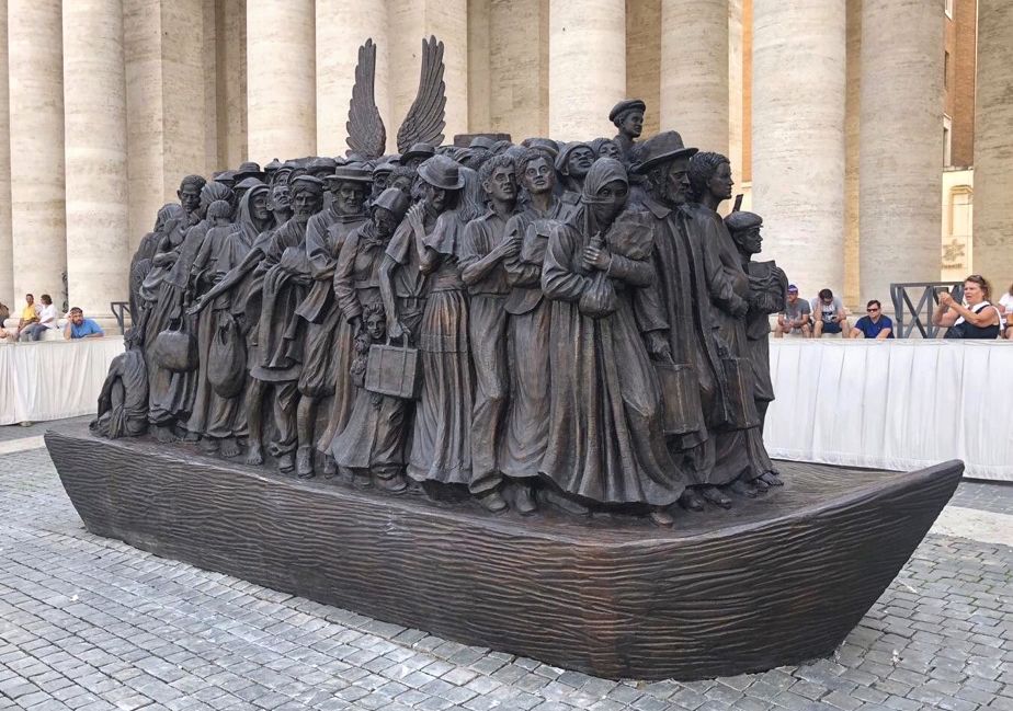 Die neue Statue reiht sich in die Werke Schmalz’ ein, die sich diesem Gedanken widmen. Bereits 2019 hatte Papst Franziskus die Bronzeskulptur „Angels Unaware“ eingeweiht, die nahe der Poststation auf dem Petersplatz steht und eine Gruppe von 140 Migranten darstellt.