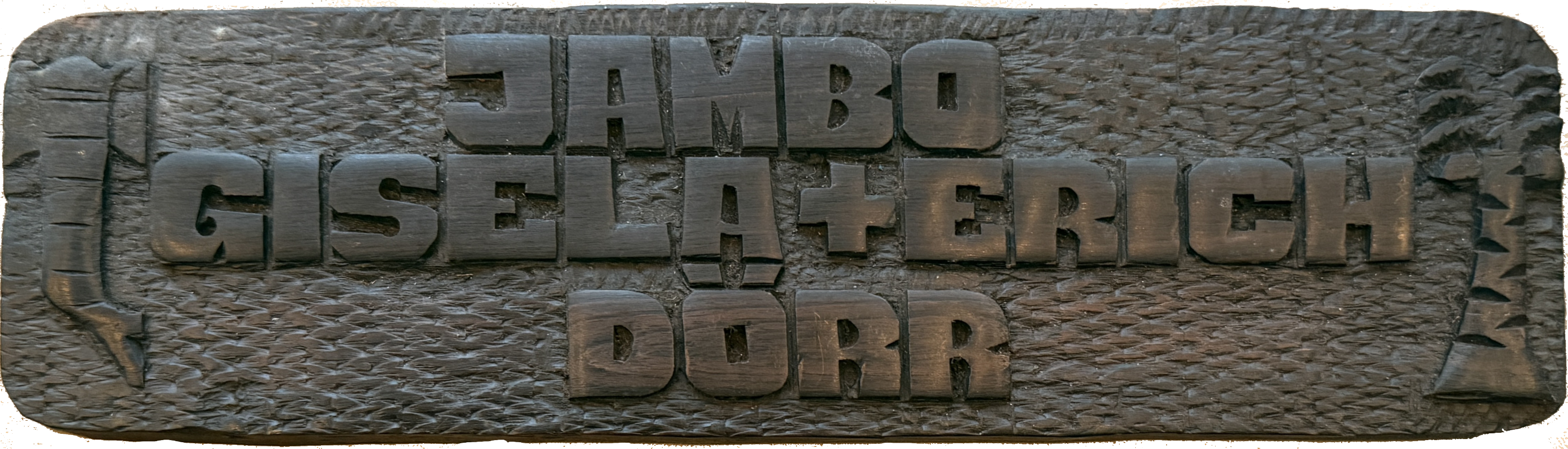 Beim Suchen nach ganz anderen Dingen fällt es mir quasi vor die Füße. Schon werden die herrlichsten und schönsten Erinnerungen wach. Es wahr vor gefühlten 100 Jahren, genau im Januar 1981, während einer weiteren Keniareise. Ein einfaches Türschild, gerade mal 30cm breit und aus dem hochwertigen Ebenholz gefertigt lässt es die herrlichsten Gedanken wach werden. Ja tatsächlich da gab es auch noch Ebenholz und es durfte auch noch ausgeführt werden. Ich weiß noch wie stolz der junge Afrikaner dieses herrliche Teil nach Fertigstellung präsentierte und wahnsinnig glücklich er war wieder einige Keniaschilling für den Unterhalt seiner Familie verdient zu haben.
